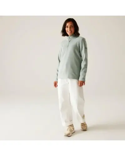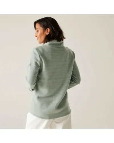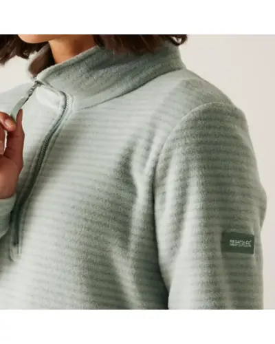 Női polár pulóver, 220gsm, 88% újrahasznosított poliészter / 12% pamut csíkos polár, 1/4 hosszú cipzáros kialakítás, Újrahasznosított tartalommal készült
