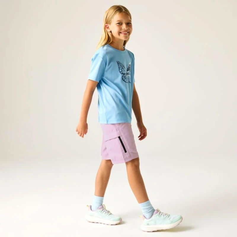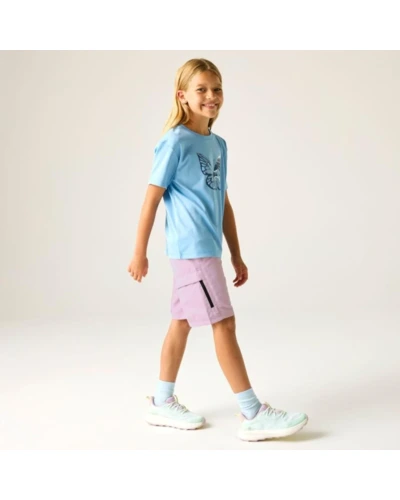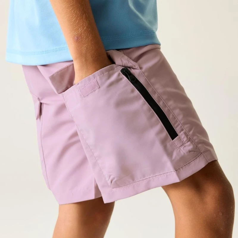 Gyerek rövidnadrát, Könnyû és fenntartható gyorsan száradó nadrág UV-védelemmel, Anyag: 100% újrahasznosított poliészter (105 g/m?) – könnyû és légáteresztő, Fenntarthatóság: Újrahasznosított anyagokból készült, Időjárásállóság: Tartós vízlepergető bevonat, Kezelhetőség: Gyorsan száradó és gyûrődésálló anyag, Derék: Gumírozott derékrész belső gombos állítórendszerrel a kényelmes illeszkedésért, Praktikum: Többzsebes kialakítás a tároláshoz, Biztonság: Fényvisszaverő részletek a jobb láthatóság érdekében, UV-védelem: UPF 50+ anyag a napsugarak elleni maximális védelemért, Ez a könnyû és funkcionális nadrág ideális választás túrázáshoz, utazáshoz vagy szabadtéri tevékenységekhez. Gyorsan száradó, gyûrődésmentes anyaga kényelmes viseletet biztosít, míg a vízlepergető bevonat és az UV-védelem extra védelmet nyújt a változó időjárási körülmények között.