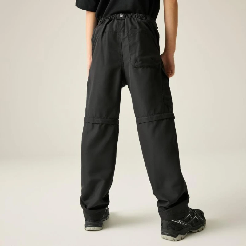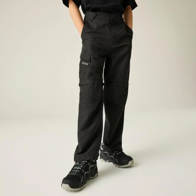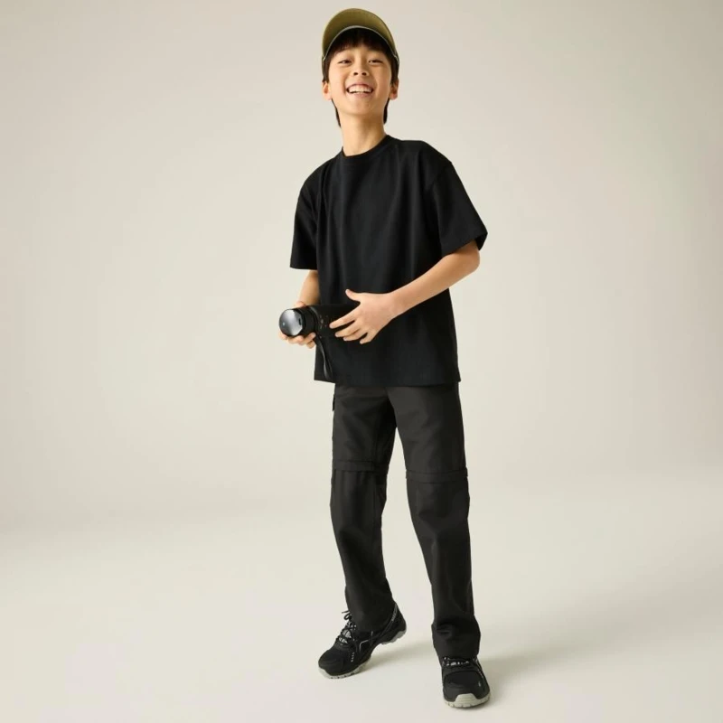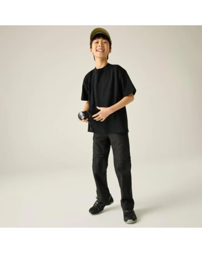 Gyerek túranadrág, Prémium gyerek könnyû túranadrág zip-off kialakítás, gyorsan száradó, UPF 50+, 105 g/m?, Ez a gyerek technikai nadrág 100% poliészter könnyû, szőtt anyagból készült, 105 g/m? súlyban. A gyûrődésálló, gyorsan száradó konstrukció ideális aktív szabadtéri használatra. A lecipzározható száraknak köszönhetően a nadrág rövidnadrággá alakítható, így változékony időjárási körülmények között is sokoldalú megoldást kínál., Főbb jellemzők:, 100% poliészter könnyû szőtt anyag, 105 g/m?, Gyûrődésálló kivitel, Gyorsan száradó konstrukció, Elasztikus derékrész belső gombos állítóval, Többzsebes kialakítás, Fényvisszaverő részletek, Lecipzározható szár, amely shorttá alakítható, UPF 50+ UV-védelem, Ajánlott: Gyerek túranadrágként ideális kiránduláshoz, táborozáshoz, utazáshoz és aktív szabadtéri programokhoz. Kiváló választás, ha fontos a variálhatóság, a gyors száradás és a napvédelem., Fenntarthatóság: A strapabíró poliészter anyag hosszú élettartamot biztosít, ellenáll az intenzív igénybevételnek. A minőségi kivitel csökkenti a gyakori ruhacsere szükségességét.