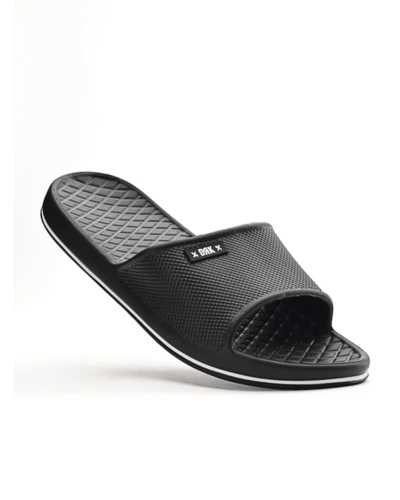 A súlytalan erő. - A SPLASH férfi papucs a legrövidebb út a lazulásig. Egybefüggő gumi anyagába EVA talpat integráltunk, hogy puha és kényelmes alapot adjunk a lelassuláshoz. A finoman texturált pánt és talpágy dinamikus megjelenést kölcsönöz a modellnek. Klasszikus, minimalista fekete és navy színben érhető el, hogy a hangsúly a letisztult erőn és a megalkuvást nem tûrő funkción maradhasson. Bárhol is járj: a SPLASH papucs a te komfortzónád.