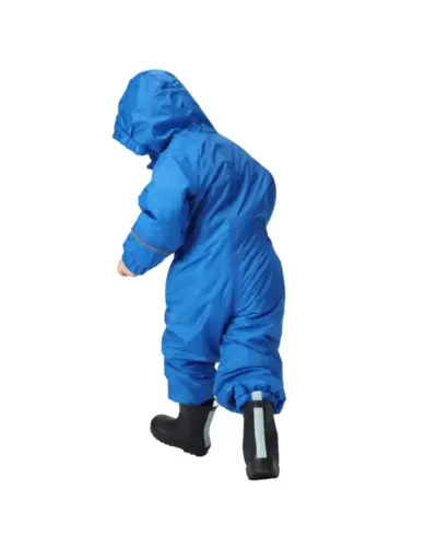 Gyerek kezeslábas, Vízálló és lélegző Isolite 5.000 mm könnyû poliamid anyag, Légáteresztő képesség: 5000 g/m2/24 óra, ragasztott varratok, a varrásnál leragasztva, hogy a tûpöttyöknél se ázzon át, Tartós vízlepergető felület, Thermoguard béléstöltet, Polár béléssel a test és kapucni részen, fix kapucni, rugalmas szegélyek