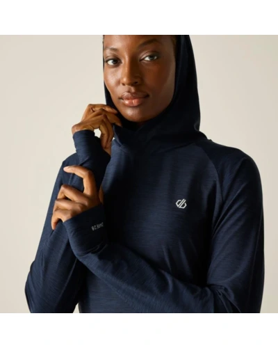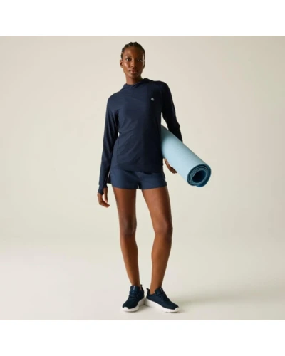női technikai pulóver, Könnyû Q-Wic+ poliészter anyag, Antibakteriális, Jó nedvszívó teljesítmény, Gyorsan száradó anyag, Nem-levehető kapucni, keresztezett nyakkal, Kenguru zseb az elején, Hüvelykujj hurok
