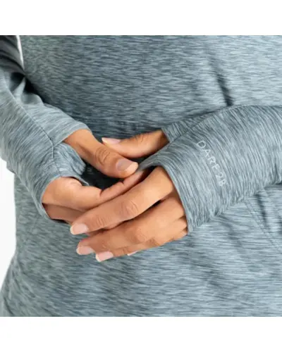 női technikai pulóver, Könnyû Q-Wic+ poliészter anyag, Antibakteriális, Jó nedvszívó teljesítmény, Gyorsan száradó anyag, Nem-levehető kapucni, keresztezett nyakkal, Kenguru zseb az elején, Hüvelykujj hurok