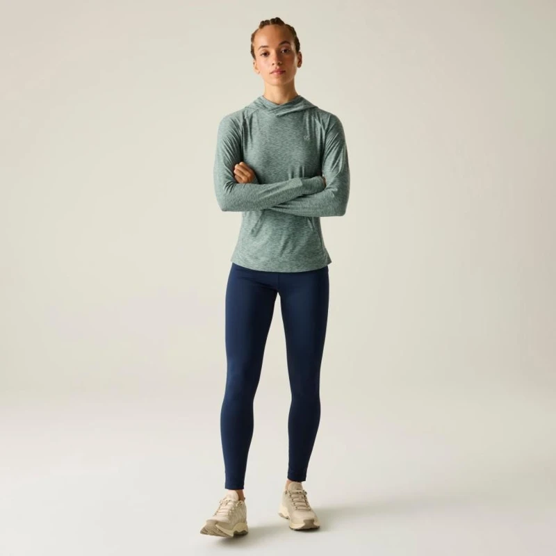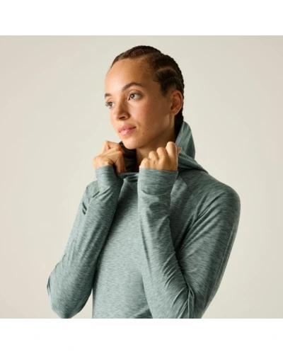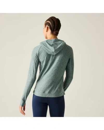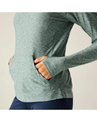 női technikai pulóver, Könnyû Q-Wic+ poliészter anyag, Antibakteriális, Jó nedvszívó teljesítmény, Gyorsan száradó anyag, Nem-levehető kapucni, keresztezett nyakkal, Kenguru zseb az elején, Hüvelykujj hurok