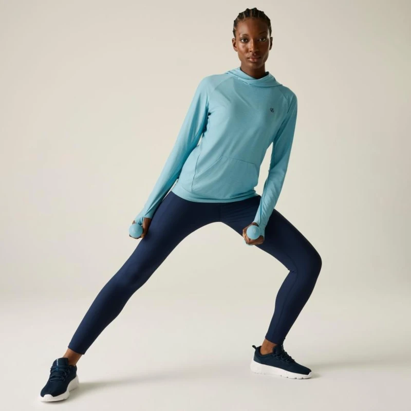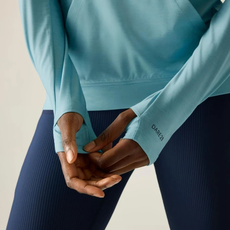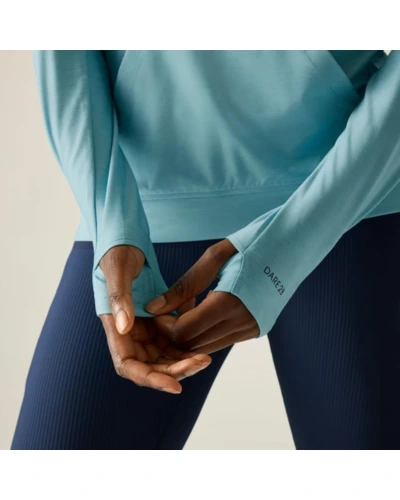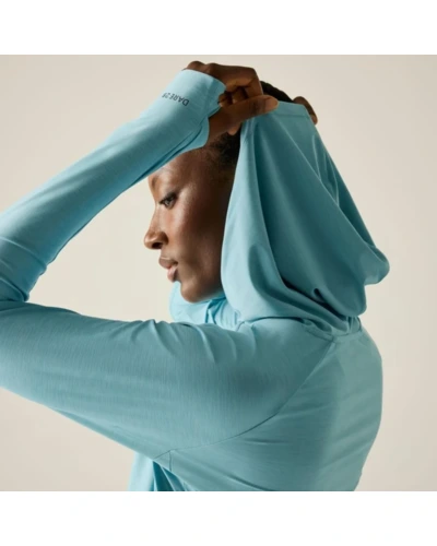 női technikai pulóver, Könnyû Q-Wic+ poliészter anyag, Antibakteriális, Jó nedvszívó teljesítmény, Gyorsan száradó anyag, Nem-levehető kapucni, keresztezett nyakkal, Kenguru zseb az elején, Hüvelykujj hurok