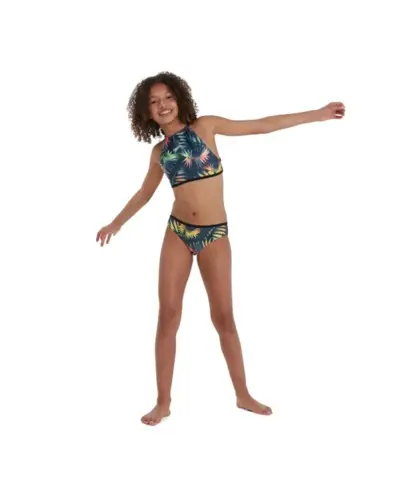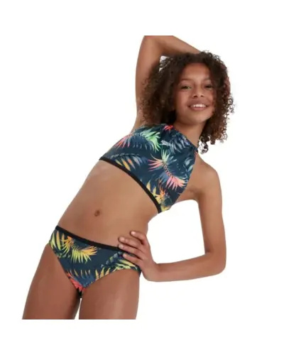 A Speedo Star kétrészes lányos fürdőruha a tizenéves lányoknak. A rugalmas anyag alkalmazkodik a mozgás közbeni test formájához, így korlátozások nélkül élvezheti az úszást. Egzotikus színek, vékony pántok. hagyományos fürdőruha-szöveteknél nagyobb klórállóságot biztosít, és a CREORA? HighClo? technológiának köszönhetően sok használat után is megtartja formáját.