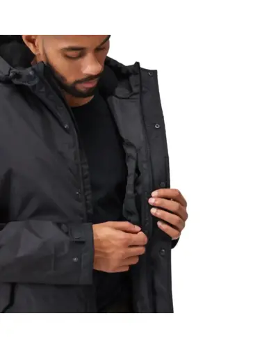 Férfi bélelt vízálló kabát, Vízálló Hydrafort 100% poliészter anyag, Tartós vízlepergető felület, 100%-ban újrahasznosított Thermoguard szigetelő töltet, 100% poliészter taft bélés, Poliészter bolyhos polár bélés a testhez és a kapucniban, Ragasztott varratok, Belső biztonsági zseb, fix, állítható kapucni, Állítható mandzsetta, 2 alsó zseb, mögötte kézmelegítő zsebek, Állítható húzózsinóros szegély