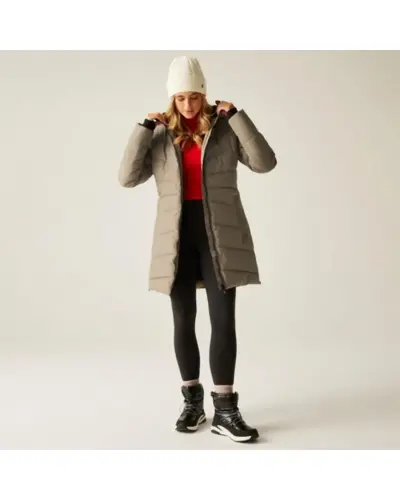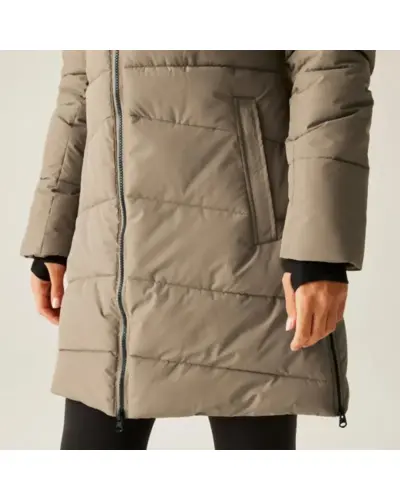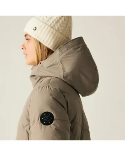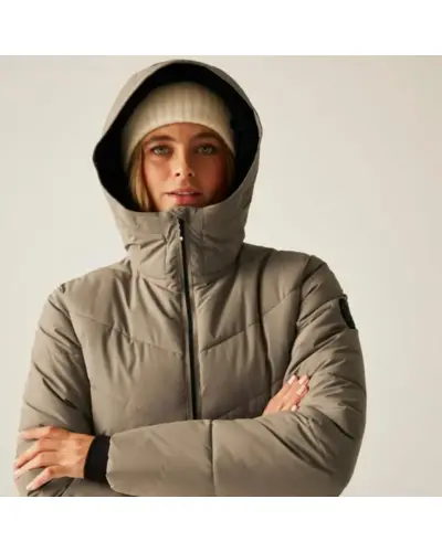 Női télikabát, Prémium női utcai kabát – Ared 10 000, vízálló, légáteresztő, újrahasznosított anyagból, Swarovski kristályos részletekkel, Ez az elegáns női utcai kabát Ared 10 000 membránnal készült, amely 10 000 mm vízállóságot és kiváló légáteresztést biztosít, így ideális viselet változékony, csapadékos időben is. Újrahasznosított, magas hőszigetelésû bélése kellemes meleget nyújt, a Swarovski kristályos jelvények és cipzárhúzók pedig kifinomult, luxus megjelenést adnak. Karcsúsított szabásával és oldalsó cipzáras szellőzőnyílásaival egyszerre biztosít elegáns sziluettet és kényelmes mozgást., Újrahasznosított, vízálló és légáteresztő anyag – Ared 10 000 (10 000 mm), Swarovski kristályos jelvények és cipzárhúzók, Tartós vízlepergető (DWR) felületkezelés, PFC-, PFOA-, PFOS-mentes környezetbarát kivitel, Fix kapucni hátsó állítópánttal, Meleg belső ujjmandzsetták, Újrahasznosított, magas hőszigetelésû bélés, Oldalsó cipzáras szellőzők a szabad mozgásért, Karcsúsított női szabás