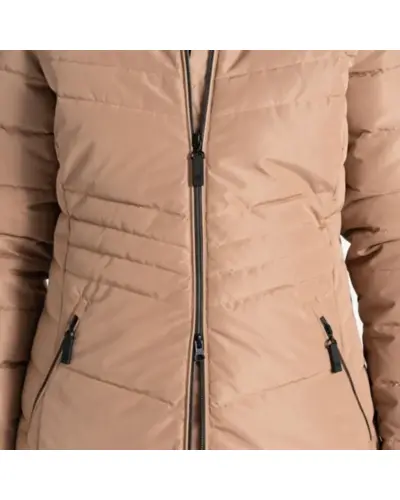 Női télikabát 10000 vízálló, Anyag: Újrahasznosított vízálló és lélegző rugalmas szövet (ARED 10/10), Vízállóság/Lélegzőképesség: 10,000 mm vízállóság, 10,000 g/m?/24h lélegzőképesség, Felületkezelés: Víztaszító, Környezetbarát: PFC, PFOA, PFOS mentes anyag, Design: Funkcionális divat, párnázott sziluett, Töltet: Újrahasznosított, magas melegséget biztosító töltet (iLoft Ecofill), Kapucni: Fix, állítható kapucni levehető mûszőrme szegéllyel (könnyen mosható), Fém hatású középső cipzár belső cipzárvédelemmel és állvédővel, Zsebek: 2 alsó zseb fém hatású cipzárral, Mandzsetta: Meleg belső ujjmandzsetta, Szellőzés: Cipzáros szellőzők az alsó szegély oldalain a szabad mozgás érdekében, Bélés: Steppelt, újrahasznosított bélés, Ez a kabát ARED 10/10 anyagból készült, amely kiváló vízállóságot és lélegzőképességet biztosít. A környezetbarát, PFC, PFOA, PFOS mentes anyag és az újrahasznosított iLoft Ecofill töltet garantálja a fenntarthatóságot és a meleget. A párnázott sziluett és a steppelt bélés stílusos és funkcionális megjelenést kölcsönöz. A fix, állítható kapucni levehető mûszőrme szegéllyel, valamint a fém hatású cipzárak és a belső ujjmandzsetta extra kényelmet és védelmet nyújtanak. A cipzáros szellőzők az alsó szegély oldalain biztosítják a szabad mozgást. Ez a kabát tökéletes választás hideg, nedves időjárásban.