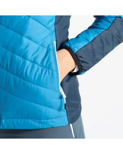 Női steppelt kabát, Hibrid kivitel, Mellső ás hátrész poliészter ripstop steppelt rész , oldalsó és karrészen rugalmas anyaggal, Újrahasznosított, magas hőmérsékletet tartó töltet – ILoft Ecofill, Magas hő/tömeg arány, 2 x alsó cipzáras zseb, Részben elasztikus szegély a kényelmes illeszkedésért