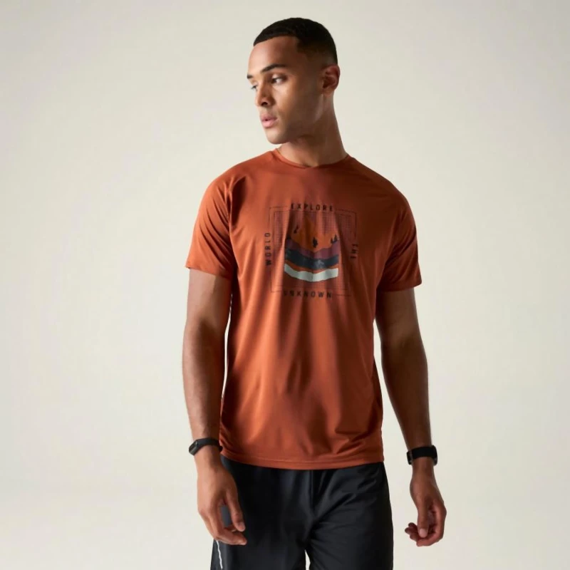 Férfi gyorsan száradó póló, Gyorsan száradó, fényvisszaverő technikai felső grafikus mintával, Újrahasznosított, könnyû poliészter/elastán keverék – rugalmas, légáteresztő és fenntartható, Quick-Dry technológia – hatékony izzadságelvezetés és gyors száradás, Grafikus mintázat modern megjelenéssel, Fényvisszaverő nyomott részletek a jobb láthatóság érdekében gyenge fényviszonyok között, Ez a kényelmes és stílusos technikai felső ideális sportoláshoz, túrázáshoz és aktív szabadtéri mozgáshoz. Gyorsan száradó és légáteresztő anyaga gondoskodik a kényelemről, míg a fényvisszaverő részletek növelik a biztonságot rossz látási viszonyok között. Az újrahasznosított anyag fenntartható választás.