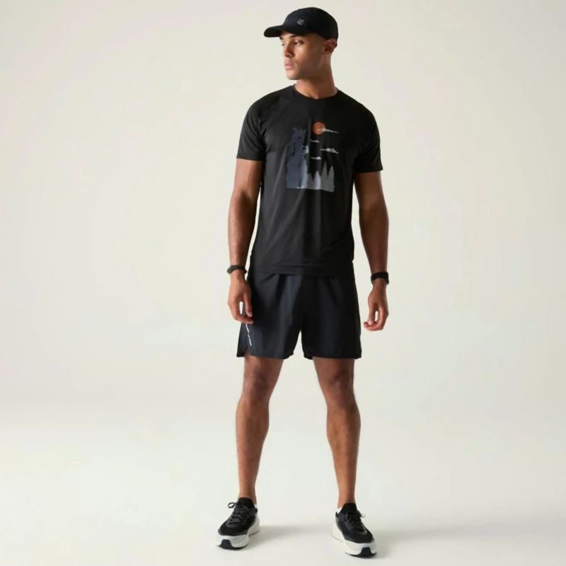Férfi gyorsan száradó póló, Gyorsan száradó, fényvisszaverő technikai felső grafikus mintával, Újrahasznosított, könnyû poliészter/elastán keverék – rugalmas, légáteresztő és fenntartható, Quick-Dry technológia – hatékony izzadságelvezetés és gyors száradás, Grafikus mintázat modern megjelenéssel, Fényvisszaverő nyomott részletek a jobb láthatóság érdekében gyenge fényviszonyok között, Ez a kényelmes és stílusos technikai felső ideális sportoláshoz, túrázáshoz és aktív szabadtéri mozgáshoz. Gyorsan száradó és légáteresztő anyaga gondoskodik a kényelemről, míg a fényvisszaverő részletek növelik a biztonságot rossz látási viszonyok között. Az újrahasznosított anyag fenntartható választás.