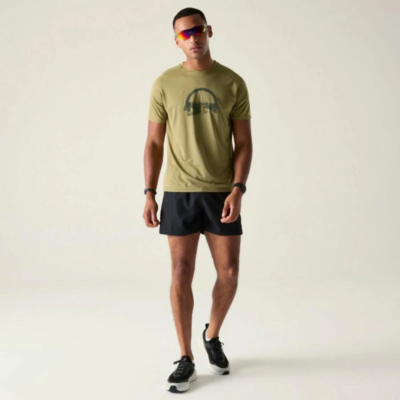 Férfi gyorsan száradó póló, Gyorsan száradó, fényvisszaverő technikai felső grafikus mintával, Újrahasznosított, könnyû poliészter/elastán keverék – rugalmas, légáteresztő és fenntartható, Quick-Dry technológia – hatékony izzadságelvezetés és gyors száradás, Grafikus mintázat modern megjelenéssel, Fényvisszaverő nyomott részletek a jobb láthatóság érdekében gyenge fényviszonyok között, Ez a kényelmes és stílusos technikai felső ideális sportoláshoz, túrázáshoz és aktív szabadtéri mozgáshoz. Gyorsan száradó és légáteresztő anyaga gondoskodik a kényelemről, míg a fényvisszaverő részletek növelik a biztonságot rossz látási viszonyok között. Az újrahasznosított anyag fenntartható választás.