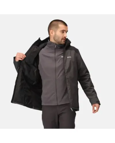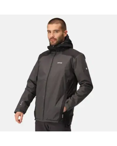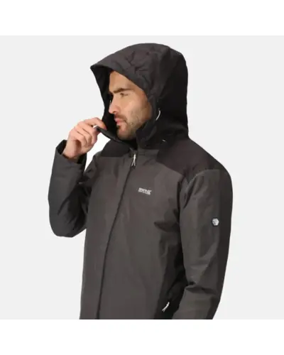 férfi bélelt esőkabát, Hydrafort - vízálló, nyomott poliészter anyag, Tartós víztaszító felület, Ragasztott varrások, Thermo-Guard hőszigetelés, Poliészter bélés polár betétekkel, Gallérba rejtett, állítható kapucni, Két cipzáros zseb az alján, Állítható, húzózsinóros alsó szegély