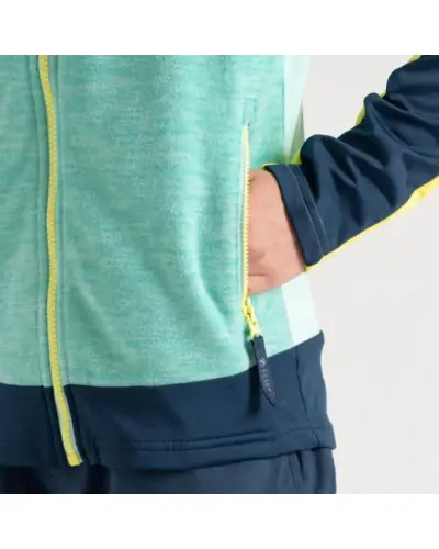 Gyerek core stretch felső, csíkos melange polár panelek - Ilus Core, Természetes antibakteriális szagcsökkentő kezelés, fix kapucni, Teljes hosszúságú cipzár, Belső cipzár és állvédő, 2 x alsó cipzáras zseb, UV-védelem (UPF) 50+