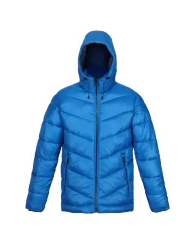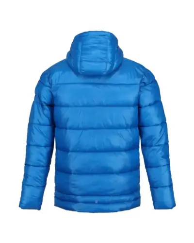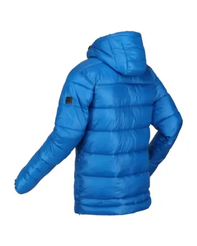 férfi télikabát, Könnyû, 20D poliamid anyag, Tartós víztaszító felület, Poliamid bélés , Újrahasznosított, tollhatású, pehelytapintású töltet, Kb. 18db 500ml-es mûagyag palackból készült, újrahasznosított töltet, Nehéz töltet, Nem-levehető kapucni, párnázott gallérral, Két cipzáros zseb az alján, Rugalmas szélû mandzsetta, Állítható, húzózsinóros alsó szegély