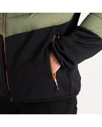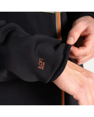 Férfi hibrid kabát, Kialakítás: Hibrid dizájn, Anyag:, Újrahasznosított prémium, nehéz súlyú, rugalmas szövet, Víztaszító mikromelegítő overlay, Szigetelés: Újrahasznosított, magas hőmegtartású bélés - ILoft Eco Air Fill, Antibakteriális kezelés: Vegyszermentes szagkontroll kezelés, Kapucni: Fix kapucni rugalmas szegéllyel, Zsebek: Két alsó cipzáras zseb, Rugalmas szegély: Mandzsetta és szegély rugalmas szegéllyel, Ez a hibrid felső kiváló választás mindenkinek, aki kényelmet, védelmet és környezetbarát megoldásokat keres. Az újrahasznosított prémium, nehéz súlyú, rugalmas szövet és a víztaszító mikromelegítő overlay kombinációja biztosítja a tartósságot és a mozgásszabadságot, miközben megvédi a viselőjét a nedvességtől. Az ILoft Eco Air Fill szigetelés magas hőmegtartást biztosít, így melegen tartja viselőjét hideg időben is. A vegyszermentes szagkontroll kezelés frissen tartja a ruhadarabot. A fix kapucni és a rugalmas szegélyek további kényelmet nyújtanak, míg a két alsó cipzáras zseb praktikus tárolási lehetőséget biztosít.