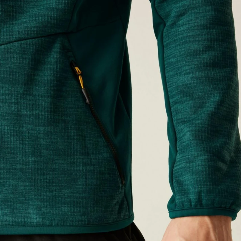 Férfi polár pulóver, Anyag:, Újrahasznosított termál kötött hatású polár, Prémium, nehéz súlyú, újrahasznosított rugalmas szövet, Cipzár: Teljes hosszúságú cipzár belső cipzárral és állvédővel, Antibakteriális kezelés: Vegyszermentes szagkontroll kezelés, Zsebek:, Egy cipzáras mellzseb, Két alsó cipzáras zseb, Szegélyek: Rugalmas szegélyek a mandzsettán és a szegélynél, Kapucni: Állítható, rugalmas zsinóros kapucni, Ez a hibrid polár ideális választás mindenkinek, aki tartósságot, kényelmet és környezetbarát megoldásokat keres. Az újrahasznosított termál kötött hatású polár és a prémium, nehéz súlyú, újrahasznosított rugalmas szövet kombinációja biztosítja a meleget és a mozgásszabadságot. A teljes hosszúságú cipzár belső cipzárral és állvédővel további kényelmet nyújt, míg a vegyszermentes szagkontroll kezelés frissen tartja a ruhadarabot. A praktikus cipzáras zsebek biztonságos tárolási lehetőséget kínálnak, a rugalmas szegélyek és az állítható, rugalmas zsinóros kapucni pedig biztosítják a tökéletes illeszkedést és extra védelmet.
