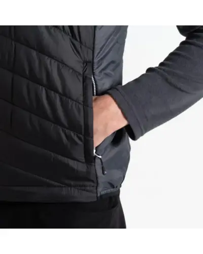 Férfi mellény, Hibrid kivitel, Mellső ás hátrész poliészter ripstop steppelt rész , oldalak core stretch anyagból, Újrahasznosított, magas hőmérsékletet tartó töltet – ILoft Ecofill, Magas hő/tömeg arány, 2 x alsó cipzáras zseb, Részben elasztikus szegély a kényelmes illeszkedésért