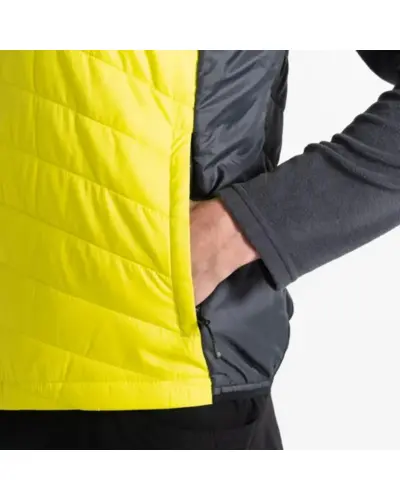 Férfi mellény, Hibrid kivitel, Mellső ás hátrész poliészter ripstop steppelt rész , oldalak core stretch anyagból, Újrahasznosított, magas hőmérsékletet tartó töltet – ILoft Ecofill, Magas hő/tömeg arány, 2 x alsó cipzáras zseb, Részben elasztikus szegély a kényelmes illeszkedésért