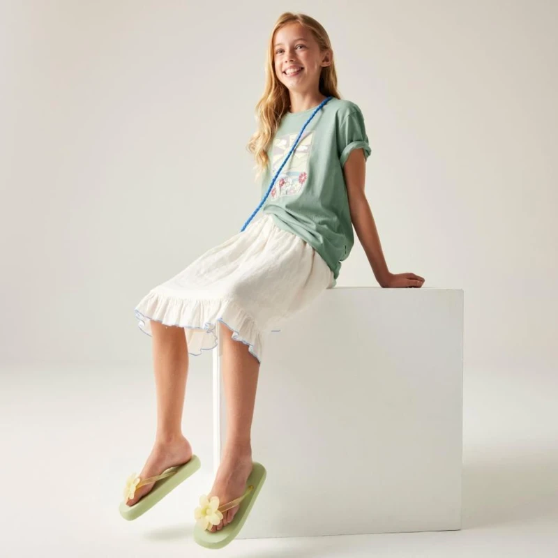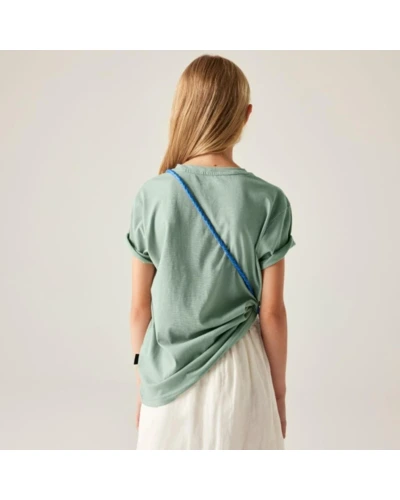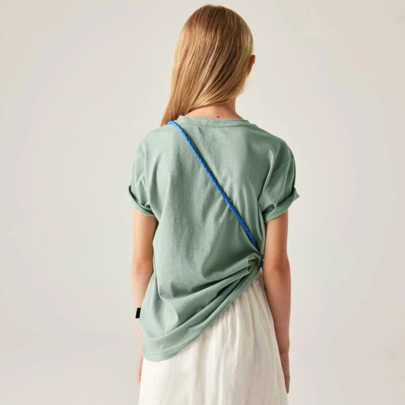 Gyerek pamut póló, Prémium gyerek pamut póló – single jersey anyag, UPF 50+ védelemmel, Ez a gyerek póló puha tapintású, kényelmes pamut single jersey anyagból készült, amely kellemes viseletet biztosít a mindennapokban. A grafikus nyomat modern megjelenést ad, míg az UPF 50+ UV-védelem extra biztonságot nyújt szabadtéri programok során., Főbb jellemzők:, Pamut single jersey alapanyag, Kényelmes, jól szellőző viselet, Grafikus print részlet, UV-védelem (UPF 50+), Ajánlott:, Iskolai mindennapokra, szabadidős tevékenységekhez és nyári szabadtéri programokhoz. Ideális önálló felsőként meleg időben vagy rétegezve hûvösebb napokon., Fenntarthatóság:, Tartós kialakítása hosszú élettartamot biztosít, amely hozzájárul a felelős ruházati használathoz.
