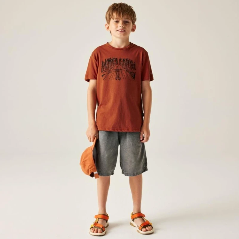 Gyerek pamut póló, Prémium gyerek pamut póló – single jersey anyag, UPF 50+ védelemmel, Ez a gyerek póló puha tapintású, kényelmes pamut single jersey anyagból készült, amely kellemes viseletet biztosít a mindennapokban. A grafikus nyomat modern megjelenést ad, míg az UPF 50+ UV-védelem extra biztonságot nyújt szabadtéri programok során., Főbb jellemzők:, Pamut single jersey alapanyag, Kényelmes, jól szellőző viselet, Grafikus print részlet, UV-védelem (UPF 50+), Ajánlott:, Iskolai mindennapokra, szabadidős tevékenységekhez és nyári szabadtéri programokhoz. Ideális önálló felsőként meleg időben vagy rétegezve hûvösebb napokon., Fenntarthatóság:, Tartós kialakítása hosszú élettartamot biztosít, amely hozzájárul a felelős ruházati használathoz.