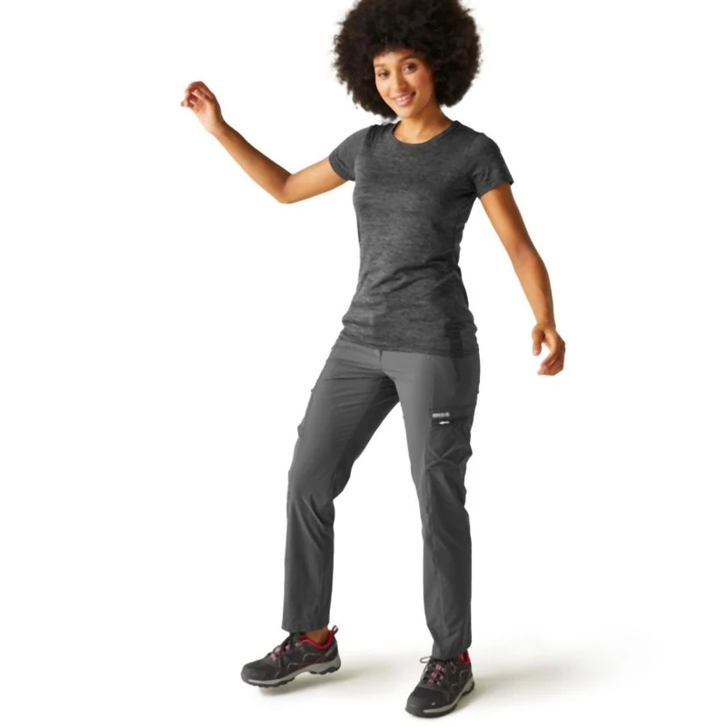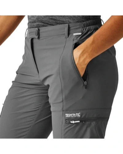 Női túranadrág, ISOFLEX - Active stretch anyag - 86% poliamid/14% elasztán, Tartós vízlepergető felület, Gyorsan szárad a nagyobb kényelem érdekében, Könnyû – az aktív teljesítményhez, Részben gumírozott derékrész, 2 cipzáras oldalzseb, 2 cipzáras lábzseb, Cipzáros lábzsebbe csomagolható, UV védelem (UPF)