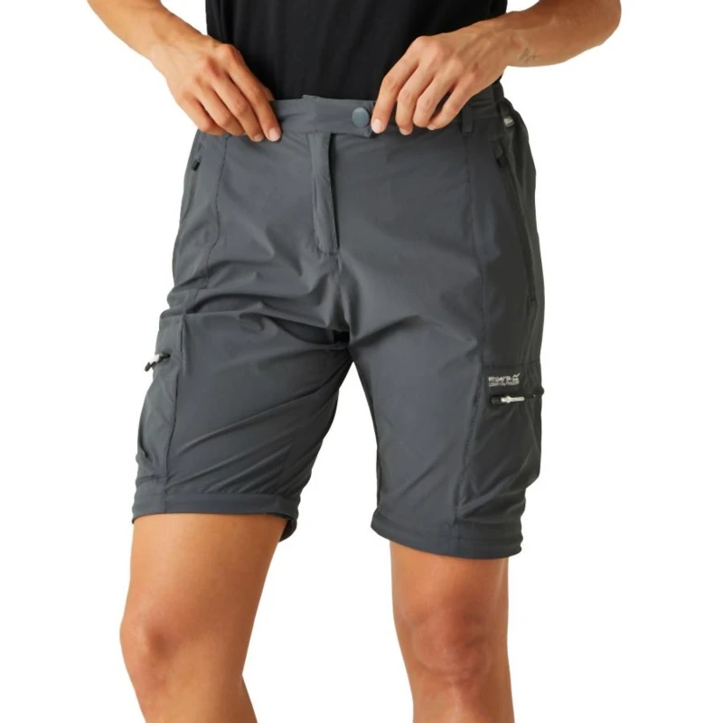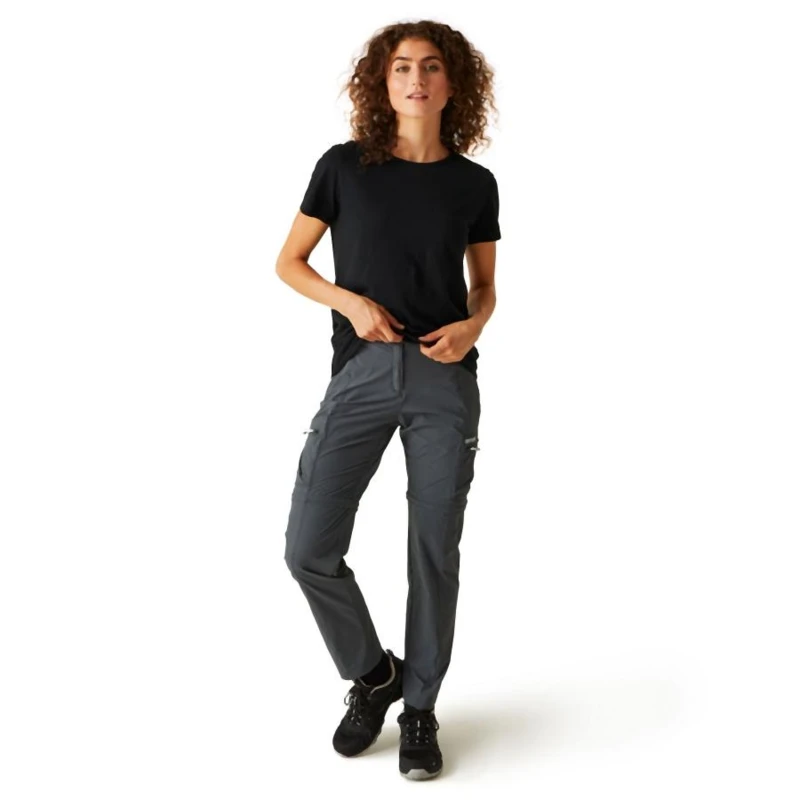 Női túranadrág, ISOFLEX - Active stretch anyag - 86% poliamid/14% elasztán, Tartós vízlepergető felület, Gyorsan szárad a nagyobb kényelem érdekében, Könnyû  az aktív teljesítményhez, Részben gumírozott derékrész, 2 cipzáras oldalzseb, 2 cipzáras lábzseb, Cipzáros lábzsebbe csomagolható, Cipzáras lábszár  rövidnadrággá alakítható, UV védelem (UPF)