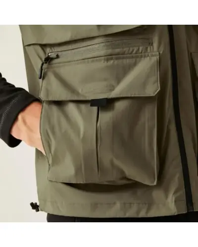 Férfi mellény, ISOFLEX - Aktív sztreccs anyag - újrahasznosított 100% poliészter, Tartós vízlepergető felület, Több nagy zseb, tépőzárral, Cipzáras mellzseb, húzózsinórral állítható szegély, Zsebbe csomagolható