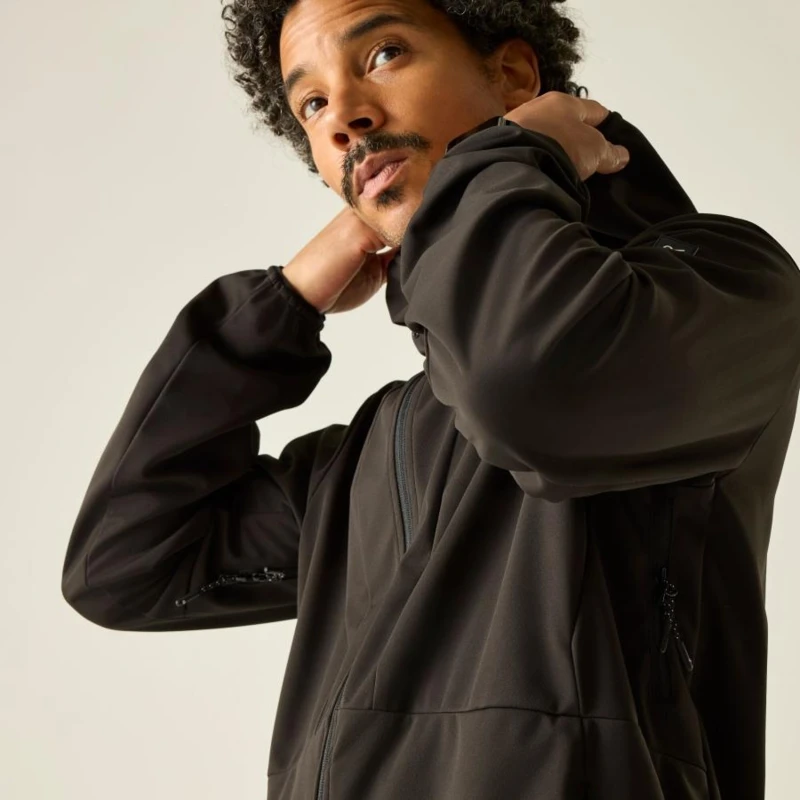 Férfi softshell kabát, Prémium férfi vízálló softshell kabát Softshell XPT technológia, 15 000 g/m?/24h légáteresztés, honeycomb hátoldal, Ez a technikai férfi softshell kabát Softshell XPT bonded konstrukcióval készült, méhsejt (honeycomb) hátoldali kialakítással, 100% poliészter összetételben, 200 g/m? súlyban. A fejlett anyagszerkezet kiváló hőkomfortot és kimagasló, 15 000 g/m?/24 óra légáteresztési teljesítményt biztosít aktív használat során. A tartós vízlepergető bevonat megbízható védelmet nyújt enyhe csapadék és szél ellen, míg a szellőző hónaljcipzárak segítik a testhő szabályozását intenzív mozgás közben., Főbb jellemzők:, Softshell XPT bonded méhsejt hátoldallal, 100% poliészter, 200 g/m?, Légáteresztési érték: 15 000 g/m?/24 óra, Tartós vízlepergető bevonat, Hónaljszellőző cipzárak a fokozott légáramlásért, 2 alsó cipzáras zseb, Rugalmas szegély a kapucni nyílásán, a mandzsettán és az alsó részen, Ajánlott: Férfi softshell kabátként ideális túrázáshoz, trekkinghez, hegymászáshoz, kiránduláshoz és aktív szabadtéri programokhoz. Kiváló választás szeles, hûvösebb időjárási körülmények között, amikor fontos a magas légáteresztés és a mozgásszabadság., Fenntarthatóság: A tartós, kopásálló poliészter softshell anyag hosszú élettartamot biztosít, csökkentve a gyakori cseréből eredő környezeti terhelést. A strapabíró konstrukció intenzív, több szezonos használatra készült.