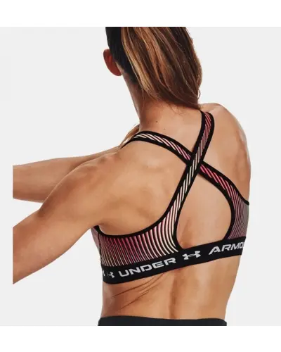 Under Armour Crossback Mid Print sportmelltartó Stratégiai támogatást nyújt olyan közepes hatású tevékenységekhez, mint a kerékpározás, erősítő edzés és boksz. A puha, gyorsan száradó poharak extra szerkezetet és fedést biztosítanak, valamint a perforációknak köszönhetően jobb légáteresztő képességet biztosítanak. A kivehető csészéken további jelölések találhatók \"jobbra\" és \"balra\" nyilak formájában, amelyeknek köszönhetően könnyen visszahelyezhetők. Keresztbe tett pántok módosított kivágással hátul a könnyebb fel- és levétel érdekében A módosított belső kialakítás segít a helyükön tartani a párnákat ? viselve és mosva A rugalmas derékrész szuper sima és puha- Szupersima, kétrétegû HeatGear? anyag kiváló bőrfelületi érzetet biztosít- Az anyag elvezeti a felesleges izzadságot, könnyû és nagyon gyorsan szárad- Anyaga: 87% poliészter/13% elasztán