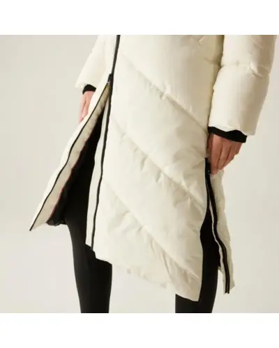 Női steppelt télikabát, Női steppelt télikabát melegség és elegancia újraértelmezve, Ez a stílusos női télikabát nemcsak kiválóan véd a hideg és nedves idő ellen, de divatos megjelenést is biztosít. A 280 g-os újrahasznosított pehelymentes szigetelés gondoskodik a melegtartásról, míg a könnyû, vízlepergető külső anyag komfortos viseletet kínál egész napra. A részleteiben is prémium kivitelezés mint a bordázott mandzsetta, kontrasztos bélés és oldalsó cipzár igazán különlegessé teszi., Külső anyag: 100% poliészter 112 g/m?, Tartós vízlepergető felületkezelés, Feather-free, újrahasznosított szintetikus szigetelés 280 g/m?, Könnyû 20d poliamid bélés 37 g/m?, 2 belső biztonsági zseb, Levehető kapucni állítható húzózsinórral, Kétirányú középső cipzár a maximális kényelemért, 2 cipzáras oldalzseb diszkrét kialakítással, Stílusos részletek:, Ribbed mandzsetták extra meleg és szélálló zárás, Kontrasztos ujja- és zsembélés prémium megjelenés, Dekoratív oldalsó cipzáras részlet, Fenntartható választás újrahasznosított anyagokból készült, Ideális választás: téli városi programokhoz, elegáns hétköznapokra, Meleg, modern, nőies ez a kabát minden szempontból nyerő.