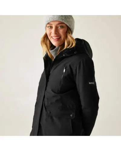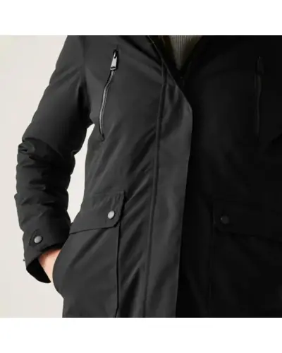 Női télikabát , Női vízálló, meleg télikabát – funkcionalitás és stílus egyben, Ez a technikai vízálló kabát ideális választás a hideg, csapadékos napokra. A rugalmas Isotex 15000 anyag kiváló vízállóságot és szellőzést biztosít, míg a 180 g/m?-es újrahasznosított Thermoguard szigetelés melegen tart még a legzordabb időben is. A párnázott, steppelt bélés, a fleece bélésû kapucni és az állítható derék extra kényelmet és melegséget nyújt., Anyag: 100% poliészter rugalmas szövet, Isotex 15000 – 165 g/m?, Légáteresztő képesség: 10,000 g/m?/24 óra, Teljesen vízálló kivitel, ragasztott varrásokkal, Thermoguard szigetelés (180 g/m?) – újrahasznosított tartalommal, Bélelt, steppelt belső panelek, Puha fleece bélésû, állítható kapucni, Állítható húzózsinóros derékrész – nőies szabás, 2 cipzáras mellzseb + 2 alsó zseb kézmelegítő nyílással, Belső biztonsági cipzáras zseb, Újrahasznosított anyagból készült – fenntartható döntés, ? Ajánlott: téli városi használatra, kiránduláshoz, mindennapi viseletre, ??? Meleg, vízálló és nőies – a hideg hónapok megbízható társa.