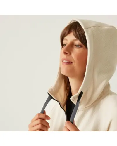 Női polár pulóver, Anyag:, 300gsm újrahasznosított, 97% poliészter / 3% elasztán texturált twill szövet, 260gsm újrahasznosított, 90% poliészter / 10% elasztán soft touch stretch polár, Reach Technology Hónaljbetét: Maximális mozgásszabadság és akadálytalan karhasználat, Beépített kapucni húzózsinórokkal, 2 cipzáras alsó zseb, Rugalmas szegély a mandzsettáknál, Újrahasznosított tartalommal készült környezettudatos választás, Ideális választás aktív életmódhoz, szabadtéri tevékenységekhez és extrém időjárási körülmények között.