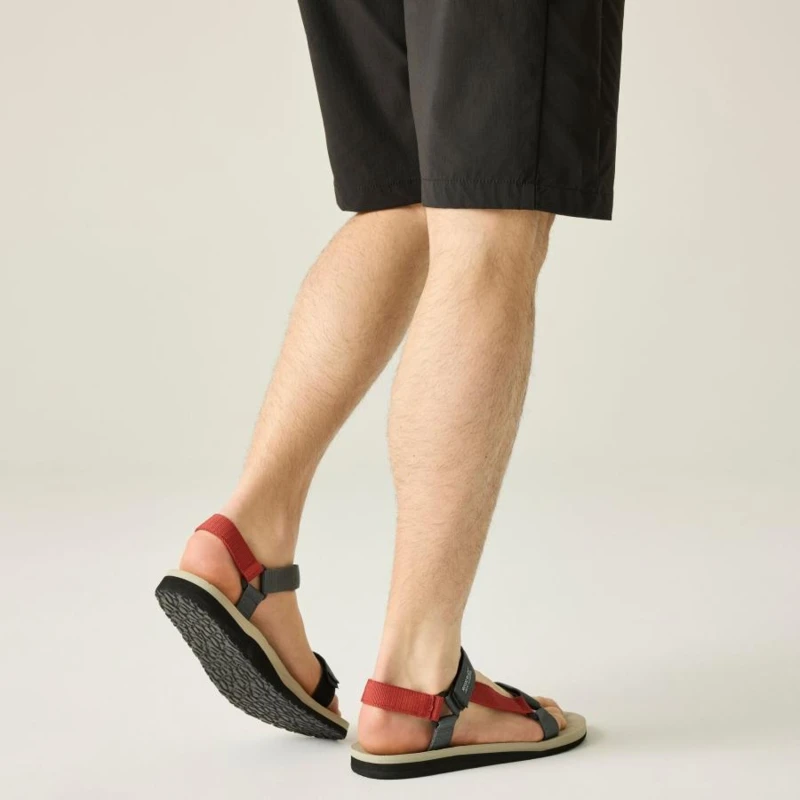 Férfi szandál, Felsőrész: Tartós nylon hálós heveder, hurokkal állítható pántok, 2 állítási pont a sokoldalú illeszkedésért, Vízbarát öntött, kényelmes EVA talpbetét, Talp: Puha, öntött EVA hab külső talp