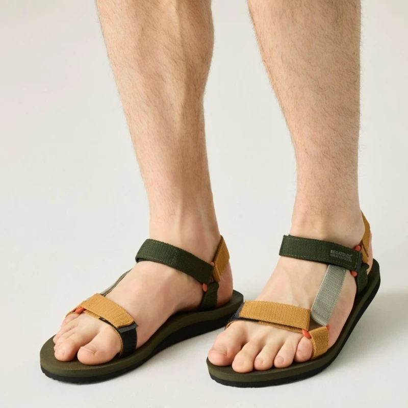 Férfi szandál, Felsőrész: Tartós nylon hálós heveder, hurokkal állítható pántok, 2 állítási pont a sokoldalú illeszkedésért, Vízbarát öntött, kényelmes EVA talpbetét, Talp: Puha, öntött EVA hab külső talp