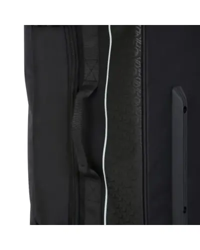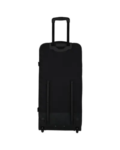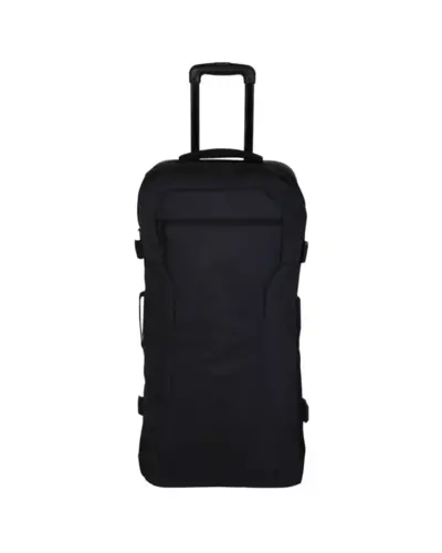 bőrönd 90L, 90 literes, Strapabíró poliészter anyag, Könnyen kezelhető cipzár, Párnázott fogantyúval, Strapabíró, megerősített alj, Erős, tartós szerkezet, Cipzáros záródás, Oldalán kompressziós hevederek, Hevederrel, Két egyforma nagyságú rekesz, hálós, cipzáros elválasztóval, Teleszkópos fogantyú, Strapabíró kerekek