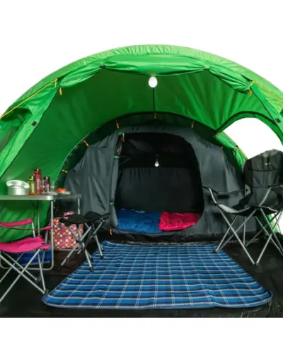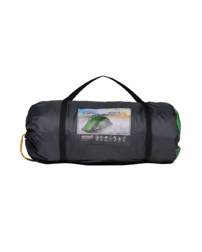 4 személyes sátor, csomag mérete: 64 x 26 x 26 cm Súly: 8 kg, Rúd: 9,5 mm üvegszál, 4 személyes, nagy lakóterület leválasztott előtér, vízálló hidrofort 70D külső ponyva, 3000 mm-ig vízálló, erős és rugalmas üvegszálas rudazat, egy fő és egy oldalbejárat, főbejárat átalakítható előtetővé (előtető sátorváz külön vásárolható), tartós, vízálló PE sátoralj, 10000 mm-ig vízálló, feltekerhető, összecsatolható sátoralj, jól használható belső zsebek és viharlámpa fellógatására alkalmas pont, több szellőző, jól látszódó, élénk színû tartókötél szett, bővíthető tárolózsák a könnyû be- és kicsomagolásért, teljesen tûzálló anyagú