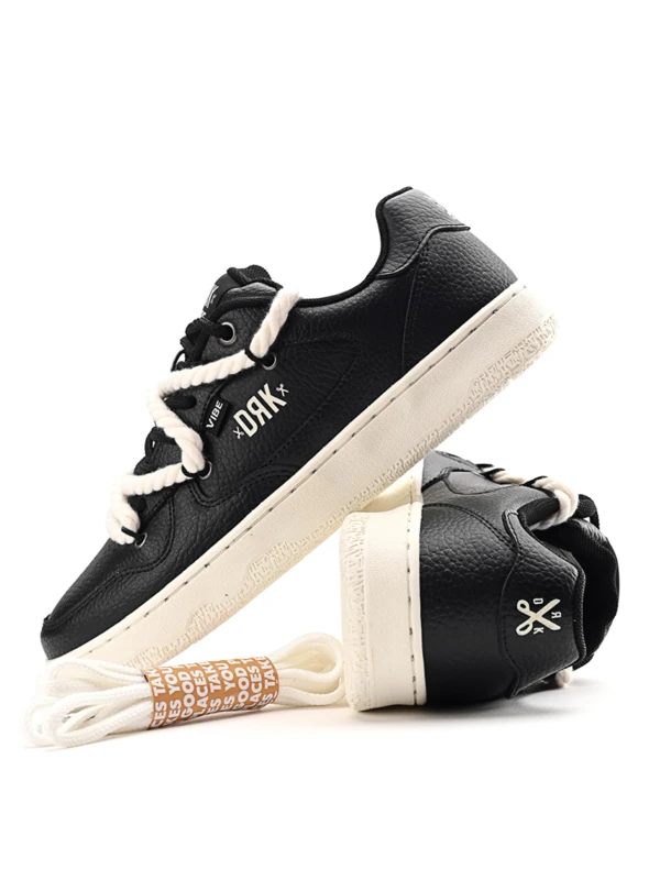 A VIBE ROPE egy igazán feltûnő, rebellis hangulatú sneaker, amit az extrém design, a vizuális hatás és az egyedi, extra fûzőrész tesz különlegessé. Bár masszívnak tûnik, meglepően könnyû viselet, így ideális a városi rohanáshoz. Streetwear-rajongóknak kötelező darab – mert a stílus nem lehet észrevétlen.