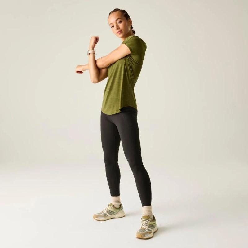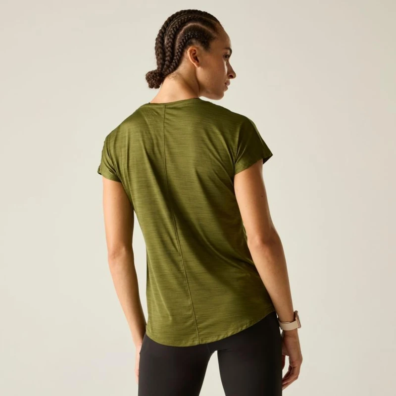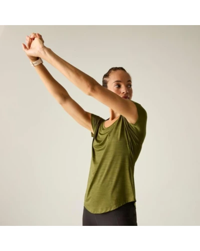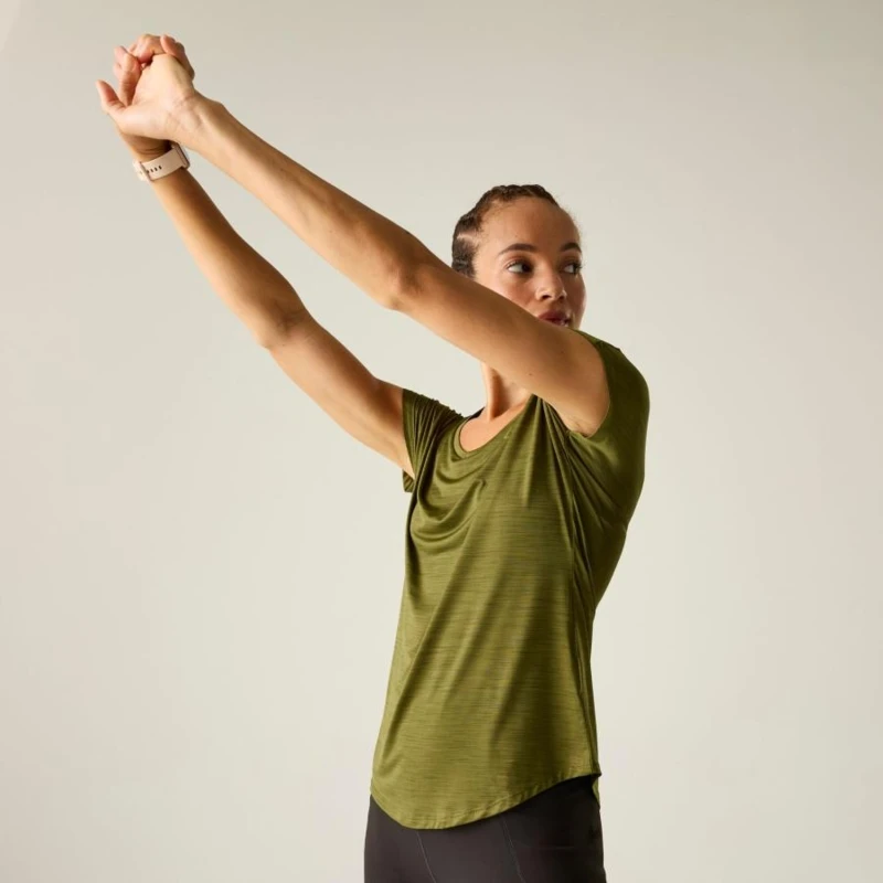 női gyorsan száradó póló, Könnyû Q-Wic poliészter és elasztán keverék anyag, Antibakteriális, Jó nedvszívó teljesítmény, Gyorsan száradó anyag, Szélesre kerekített hónalj szabás