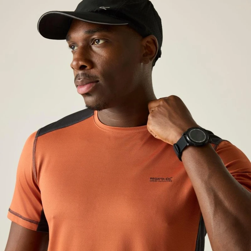 Férfi póló, Technikai jacquard mesh felső – újrahasznosított poliészterrel, gyorsan száradó kivitel, A 65% poliészter, 30% újrahasznosított poliészter és 5% elasztán összetételû jacquard mesh anyag (150 g/m?) rugalmas, tartós és jól szellőző viseletet biztosít. A 100% poliészter marl csíkos mesh betétek (100 g/m?) tovább fokozzák a légáteresztést és a komfortérzetet. A technikai szövet hatékony nedvességelvezető képességgel és gyors száradási tulajdonsággal rendelkezik, így ideális intenzív mozgáshoz és aktív szabadtéri használatra., 65% poliészter / 30% újrahasznosított poliészter / 5% elasztán jacquard mesh anyag – 150 g/m?, 100% poliészter marl csíkos mesh – 100 g/m?, Rugalmas, jól szellőző szerkezet, Jó nedvességelvezető teljesítmény, Gyorsan száradó technikai szövet, Kényelmes viselet sporthoz és aktív használathoz, Ajánlott:, Futáshoz, túrázáshoz, edzéshez, kerékpározáshoz és minden olyan sporttevékenységhez, ahol fontos a könnyû, légáteresztő, gyorsan száradó technikai ruházat.