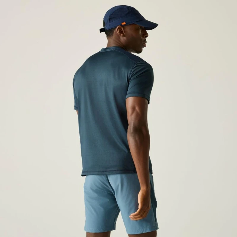 Férfi póló, Technikai jacquard mesh felső újrahasznosított poliészterrel, gyorsan száradó kivitel, A 65% poliészter, 30% újrahasznosított poliészter és 5% elasztán összetételû jacquard mesh anyag (150 g/m?) rugalmas, tartós és jól szellőző viseletet biztosít. A 100% poliészter marl csíkos mesh betétek (100 g/m?) tovább fokozzák a légáteresztést és a komfortérzetet. A technikai szövet hatékony nedvességelvezető képességgel és gyors száradási tulajdonsággal rendelkezik, így ideális intenzív mozgáshoz és aktív szabadtéri használatra., 65% poliészter / 30% újrahasznosított poliészter / 5% elasztán jacquard mesh anyag 150 g/m?, 100% poliészter marl csíkos mesh 100 g/m?, Rugalmas, jól szellőző szerkezet, Jó nedvességelvezető teljesítmény, Gyorsan száradó technikai szövet, Kényelmes viselet sporthoz és aktív használathoz, Ajánlott:, Futáshoz, túrázáshoz, edzéshez, kerékpározáshoz és minden olyan sporttevékenységhez, ahol fontos a könnyû, légáteresztő, gyorsan száradó technikai ruházat.