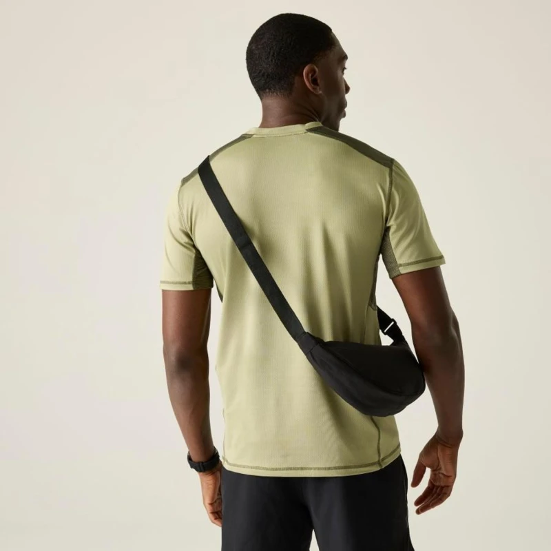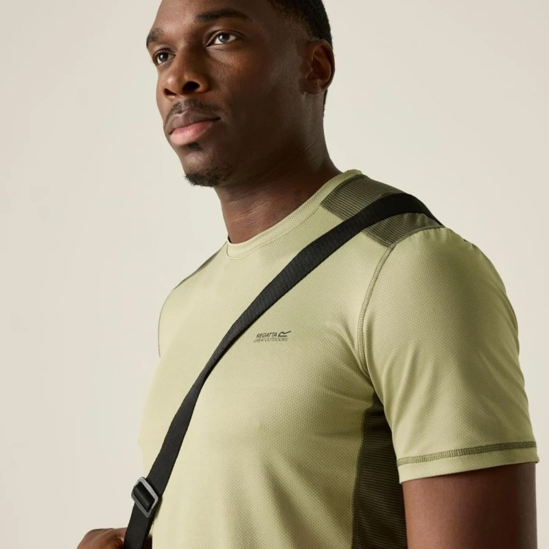 Férfi póló, Technikai jacquard mesh felső újrahasznosított poliészterrel, gyorsan száradó kivitel, A 65% poliészter, 30% újrahasznosított poliészter és 5% elasztán összetételû jacquard mesh anyag (150 g/m?) rugalmas, tartós és jól szellőző viseletet biztosít. A 100% poliészter marl csíkos mesh betétek (100 g/m?) tovább fokozzák a légáteresztést és a komfortérzetet. A technikai szövet hatékony nedvességelvezető képességgel és gyors száradási tulajdonsággal rendelkezik, így ideális intenzív mozgáshoz és aktív szabadtéri használatra., 65% poliészter / 30% újrahasznosított poliészter / 5% elasztán jacquard mesh anyag 150 g/m?, 100% poliészter marl csíkos mesh 100 g/m?, Rugalmas, jól szellőző szerkezet, Jó nedvességelvezető teljesítmény, Gyorsan száradó technikai szövet, Kényelmes viselet sporthoz és aktív használathoz, Ajánlott:, Futáshoz, túrázáshoz, edzéshez, kerékpározáshoz és minden olyan sporttevékenységhez, ahol fontos a könnyû, légáteresztő, gyorsan száradó technikai ruházat.