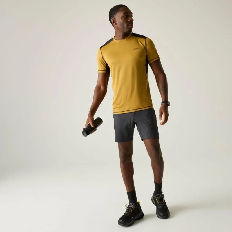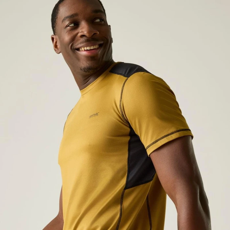 Férfi póló, Technikai jacquard mesh felső – újrahasznosított poliészterrel, gyorsan száradó kivitel, A 65% poliészter, 30% újrahasznosított poliészter és 5% elasztán összetételû jacquard mesh anyag (150 g/m?) rugalmas, tartós és jól szellőző viseletet biztosít. A 100% poliészter marl csíkos mesh betétek (100 g/m?) tovább fokozzák a légáteresztést és a komfortérzetet. A technikai szövet hatékony nedvességelvezető képességgel és gyors száradási tulajdonsággal rendelkezik, így ideális intenzív mozgáshoz és aktív szabadtéri használatra., 65% poliészter / 30% újrahasznosított poliészter / 5% elasztán jacquard mesh anyag – 150 g/m?, 100% poliészter marl csíkos mesh – 100 g/m?, Rugalmas, jól szellőző szerkezet, Jó nedvességelvezető teljesítmény, Gyorsan száradó technikai szövet, Kényelmes viselet sporthoz és aktív használathoz, Ajánlott:, Futáshoz, túrázáshoz, edzéshez, kerékpározáshoz és minden olyan sporttevékenységhez, ahol fontos a könnyû, légáteresztő, gyorsan száradó technikai ruházat.