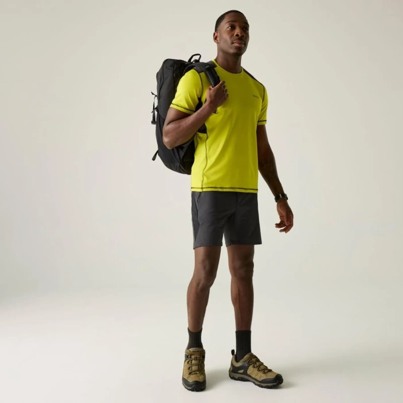 Férfi póló, Technikai jacquard mesh felső újrahasznosított poliészterrel, gyorsan száradó kivitel, A 65% poliészter, 30% újrahasznosított poliészter és 5% elasztán összetételû jacquard mesh anyag (150 g/m?) rugalmas, tartós és jól szellőző viseletet biztosít. A 100% poliészter marl csíkos mesh betétek (100 g/m?) tovább fokozzák a légáteresztést és a komfortérzetet. A technikai szövet hatékony nedvességelvezető képességgel és gyors száradási tulajdonsággal rendelkezik, így ideális intenzív mozgáshoz és aktív szabadtéri használatra., 65% poliészter / 30% újrahasznosított poliészter / 5% elasztán jacquard mesh anyag 150 g/m?, 100% poliészter marl csíkos mesh 100 g/m?, Rugalmas, jól szellőző szerkezet, Jó nedvességelvezető teljesítmény, Gyorsan száradó technikai szövet, Kényelmes viselet sporthoz és aktív használathoz, Ajánlott:, Futáshoz, túrázáshoz, edzéshez, kerékpározáshoz és minden olyan sporttevékenységhez, ahol fontos a könnyû, légáteresztő, gyorsan száradó technikai ruházat.