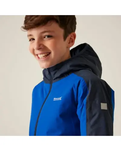 Gyere bélelt 10000 vízálló és lélegző kabát, Anyag: Isotex 10000 újrahasznosított 100% poliészter szövet., Lélegzőképesség: 10,000g/m?/24 óra, biztosítva a megfelelő szellőzést és nedvességkezelést., Vízlepergető: Tartós vízlepergető bevonattal ellátott, amely megvédi a kabátot a nedvességtől., Varratok: Ragasztott varratok a teljes vízállóság érdekében., Szigetelés: Közepes vastagságú Thermoguard szigetelés, amely melegen tart hideg időben., Kapucni: Beépített kapucni elasztikus szegéllyel., Zsebek: Két cipzáras alsó zseb a biztonságos tárolás érdekében., Rugalmasság: Rugalmas szegélyek a kapucni nyílásánál, a mandzsettákon és a szegélynél, amelyek növelik a kényelem és az illeszkedés szintjét., Láthatóság: Stratégiai helyeken elhelyezett, erősen fényvisszaverő nyomtatott panelek a fokozott láthatóság érdekében., Nyomtatott névcímke: Nyomtatott névcímke elérhető 8 éves korig, segítve a személyre szabást., Ez a kabát ideális választás nedves és hideg időjárási körülmények között, mivel meleg, vízálló, jól szellőző, és különleges biztonsági jellemzőkkel rendelkezik, miközben környezetbarát anyagokat használ.