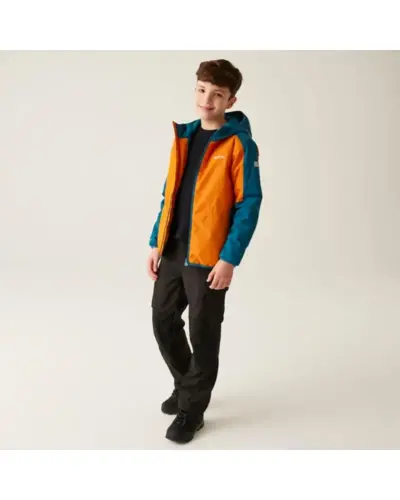 Gyere bélelt 10000 vízálló és lélegző kabát, Anyag: Isotex 10000 újrahasznosított 100% poliészter szövet., Lélegzőképesség: 10,000g/m?/24 óra, biztosítva a megfelelő szellőzést és nedvességkezelést., Vízlepergető: Tartós vízlepergető bevonattal ellátott, amely megvédi a kabátot a nedvességtől., Varratok: Ragasztott varratok a teljes vízállóság érdekében., Szigetelés: Közepes vastagságú Thermoguard szigetelés, amely melegen tart hideg időben., Kapucni: Beépített kapucni elasztikus szegéllyel., Zsebek: Két cipzáras alsó zseb a biztonságos tárolás érdekében., Rugalmasság: Rugalmas szegélyek a kapucni nyílásánál, a mandzsettákon és a szegélynél, amelyek növelik a kényelem és az illeszkedés szintjét., Láthatóság: Stratégiai helyeken elhelyezett, erősen fényvisszaverő nyomtatott panelek a fokozott láthatóság érdekében., Nyomtatott névcímke: Nyomtatott névcímke elérhető 8 éves korig, segítve a személyre szabást., Ez a kabát ideális választás nedves és hideg időjárási körülmények között, mivel meleg, vízálló, jól szellőző, és különleges biztonsági jellemzőkkel rendelkezik, miközben környezetbarát anyagokat használ.