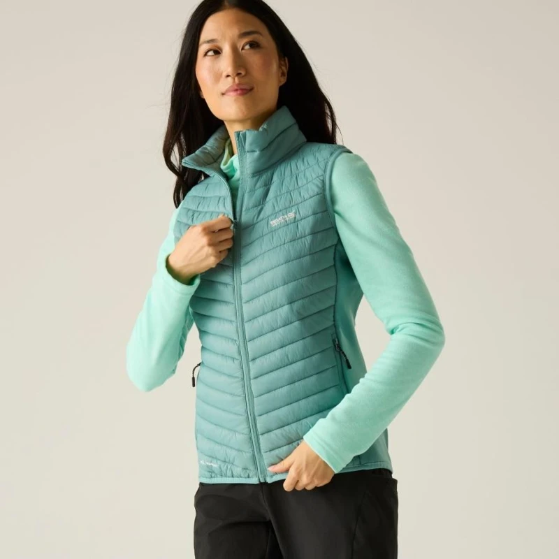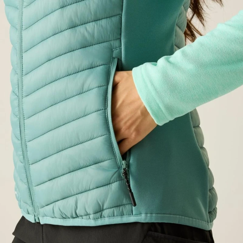 Női mellény, Könnyû 20d poliamid szövet – fő anyag a testpanelen, Újrahasznosított Extol Stretch melegített kötött szövet – 90% poliészter / 10% elasztán, 235gsm, Tartós vízlepergető bevonat – extra védelem a testpanelen, Warmloft down-touch vízlepergető szintetikus szigetelés – optimális hőszigetelés, Könnyû töltet – 120gsm – meleg és komfortos viselet, Könnyen összenyomható kialakítás – praktikus tárolás és szállítás, Belső cipzárvédő – extra komfort és hőmegtartás, 2 cipzáras alsó zseb – biztonságos és praktikus tárolási lehetőség, Rugalmas szegély a karkivágásnál és derékrészen – testhezálló, kényelmes illeszkedés, Újrahasznosított anyagokból készült – fenntartható és környezettudatos választás