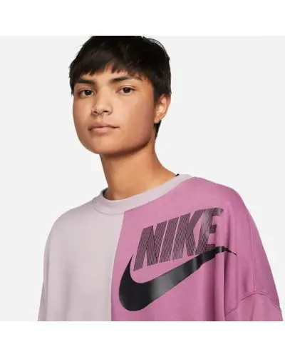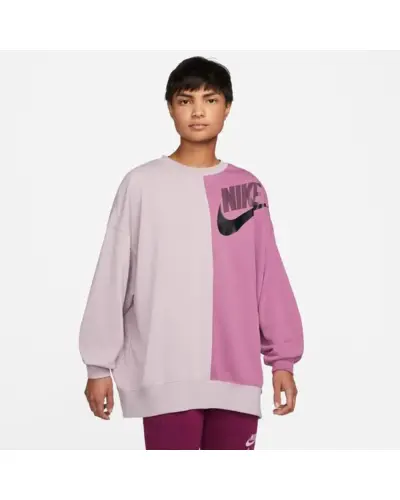 Nike SportswearWomen\'s Over-Oversized Fleece SweatshirtWarm up, cool down or just chill out in this cozy, oversized style. Baggy through the body and hips, this top provides you with room enough to move during your wildest living room dance party. A spliced-color design updates a soft favorite to put added emphasis to the Swoosh logo.Smooth on the outside and made up of rows of tiny loops on the inside, this soft fabric is a versatile option you can wear all year.Our longest fit, this roomy style hits below your hips for a carefree, comfortable look.Ribbed hem and cuffs keep everything in place while you move. More Details \r
