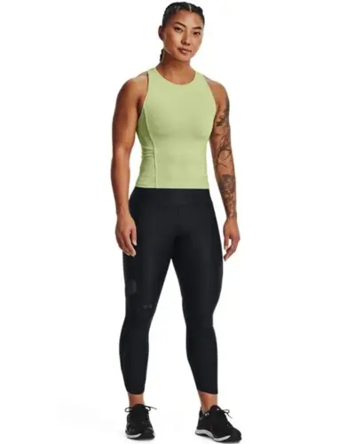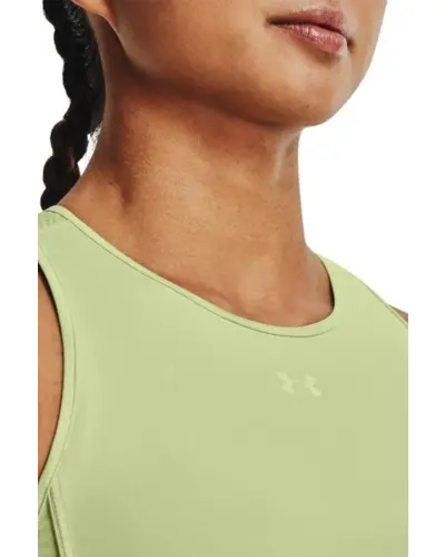 Under Armour Canotta Heatgear női trikó. Tökéletes választás edzéshez hölgyeknek. Nyomott márkajelzés. Hálós szellőző panelek az ujjakon és a háton. Anyaga: Under Armour Heat Gear kiváló izzadtság elvezetést és szellőzést biztosító (90% poliészter, 10% elasztán). Termékleírás: Könnyû HeatGear? anyag a könnyû csomagoláshoz Segíti a száraz és kényelmes viseletet Rugalmas sztreccs szövet a jobb mobilitás érdekében Meghosszabbított, szegély a fokozott fedésért Fő szövet: poliészter, spandex Hideg gépi mosás azonos színnel Nem vasalható